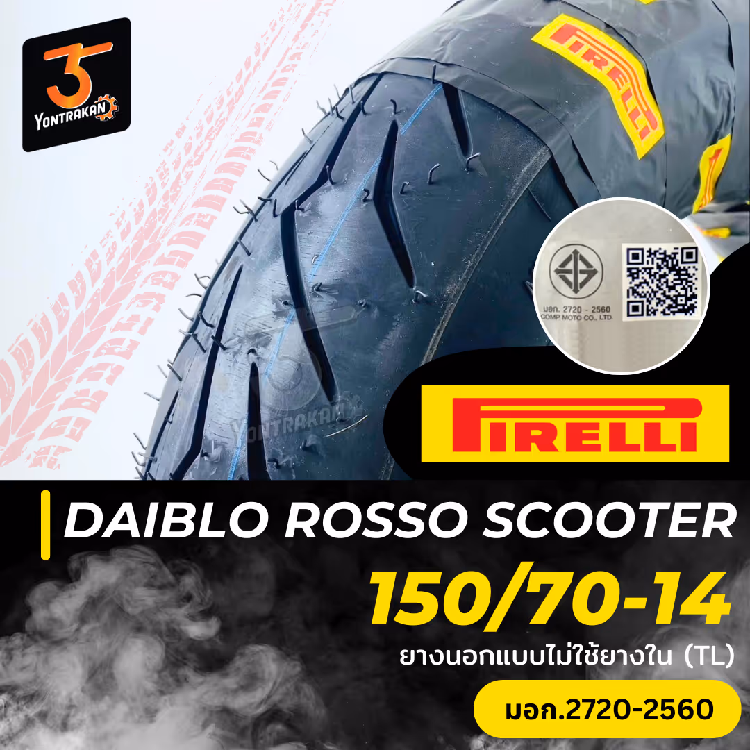 ยางนอก PIRELLI-DIABLO ROSSO SCOOTER 150/70-14 ยางนอกแบบไม่ใช้ยางใน (TL)